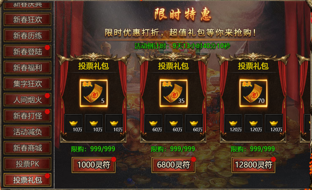 【活动内容】:活动期间,可用灵符购买投票特惠礼包!