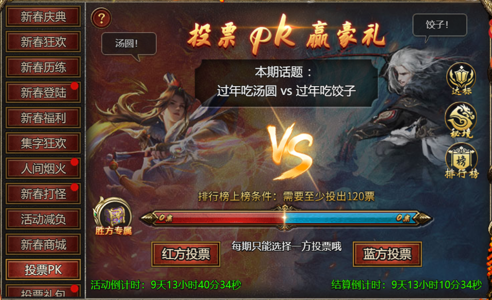 【活动内容】:活动期间,可选择阵营投票,投票上榜可获得丰厚奖励!